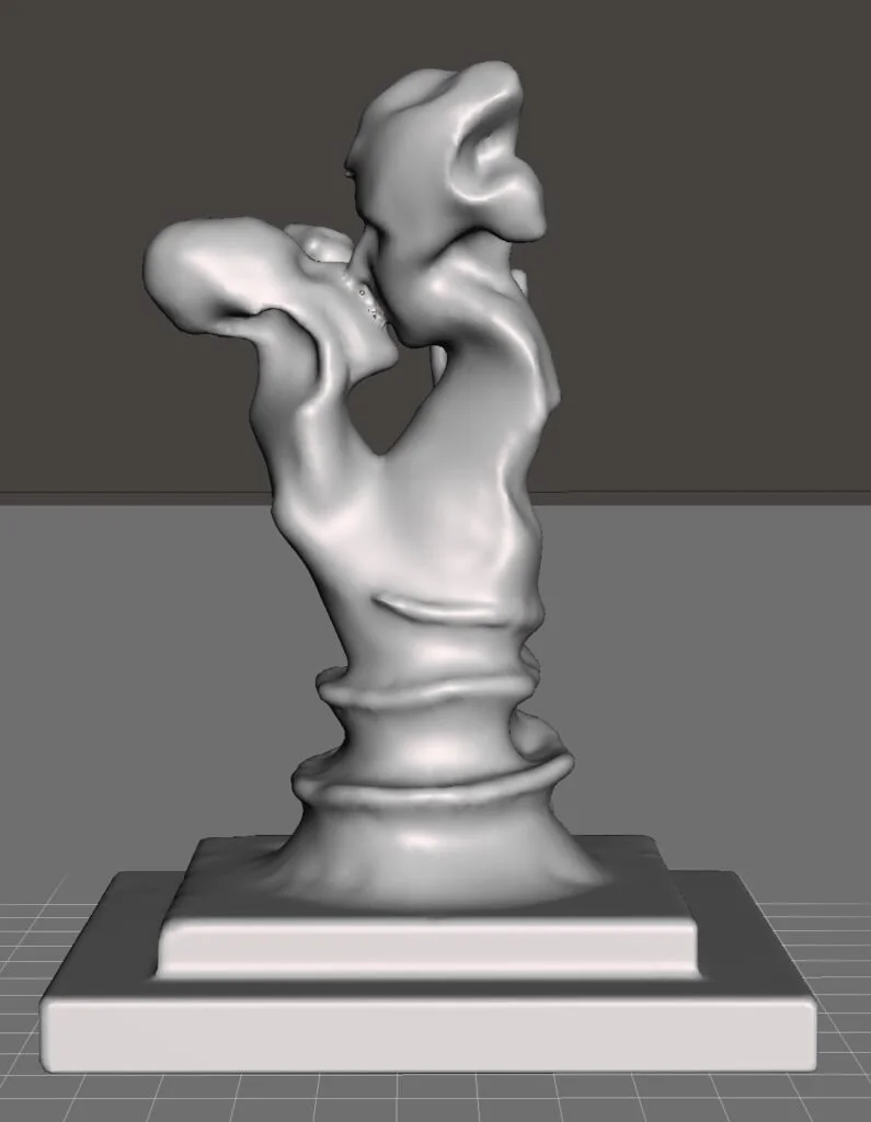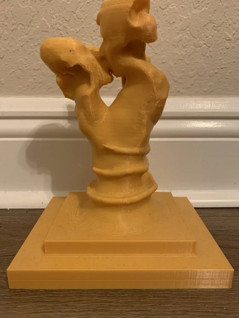 DESCRIPTION: This project was inspired by Adam and Eve. I created a monument with significant meaning behind it. Religion is a huge part of my life; therefore, I created something with meaning to me. The two people kissing represent Adam and Eve, and the snake represents the serpent in the biblical scripture. When I finished modeling the project I 3D printed it.